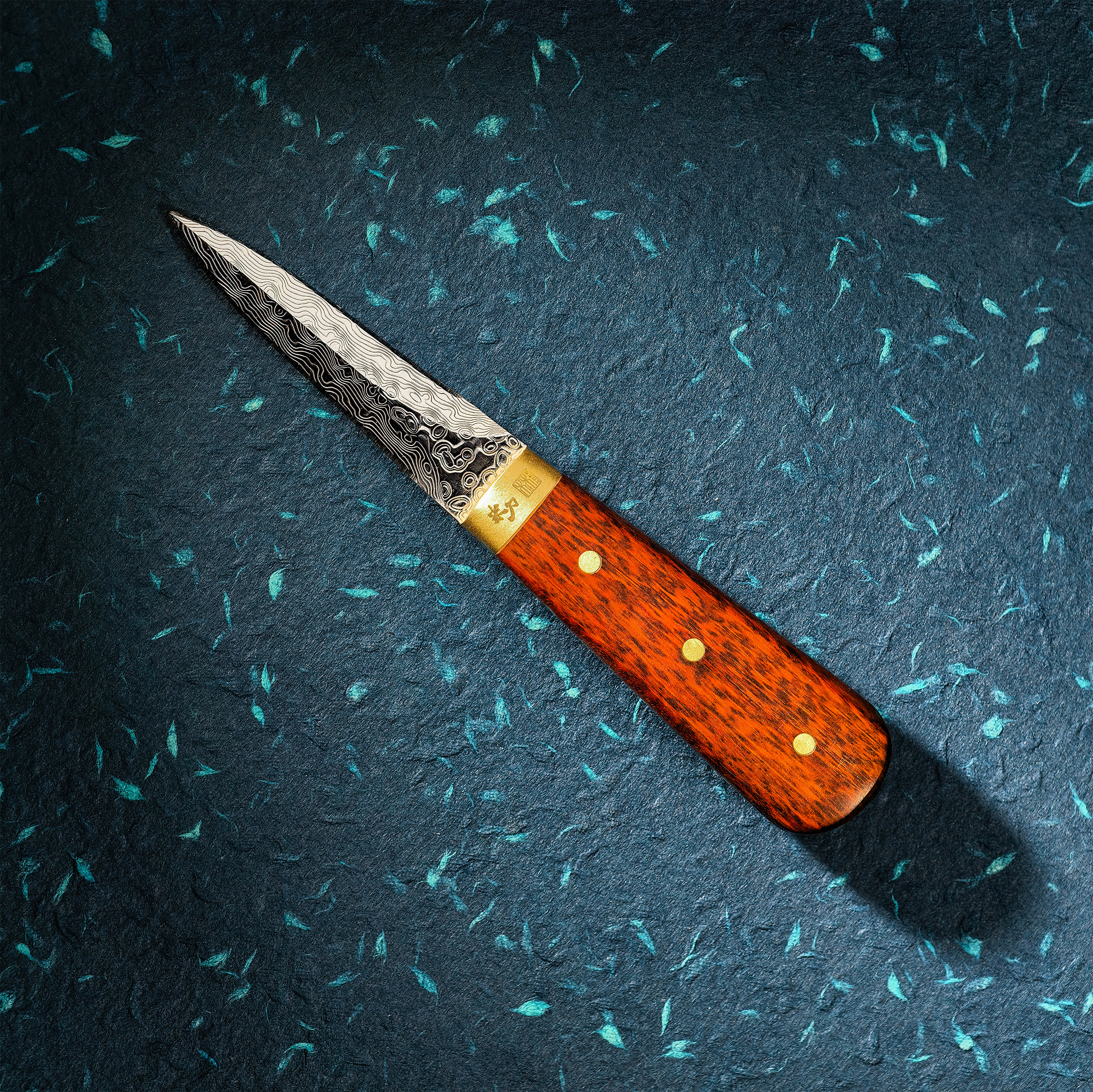 Damaskusstål østerskniv med slangeskæfthåndtag
