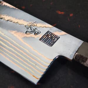 Efter varmebehandlingen, der gav VG10 maksimal hårdhed, blev kobberet på overfladen forbrændt, og messingen smeltede. Det var kærlighed ved første blik.