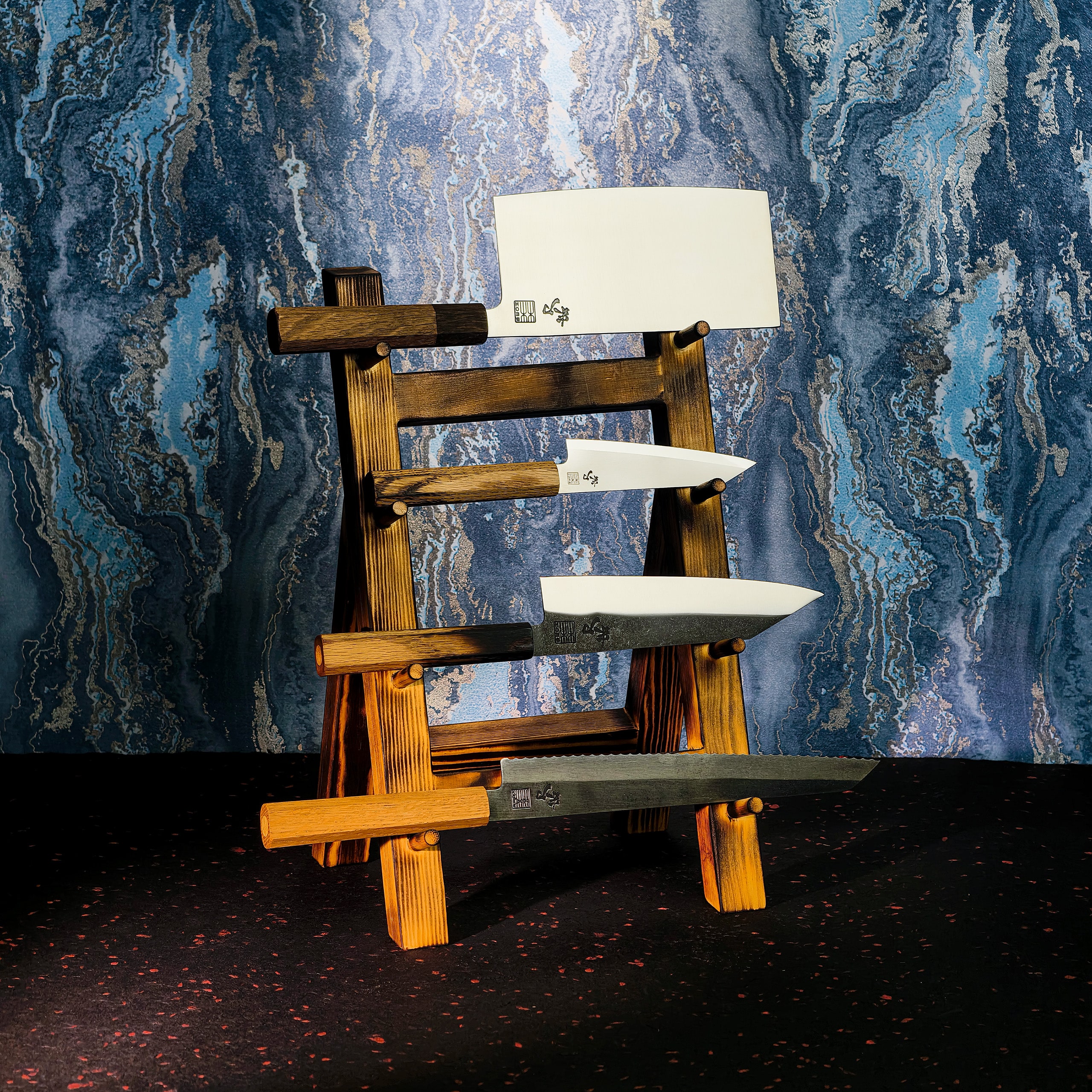 Hver klinge i serien har sin egen unikke overflade.Hvert håndtag har sin egen karakter.En knivserie skal ikke være seks ens knive.