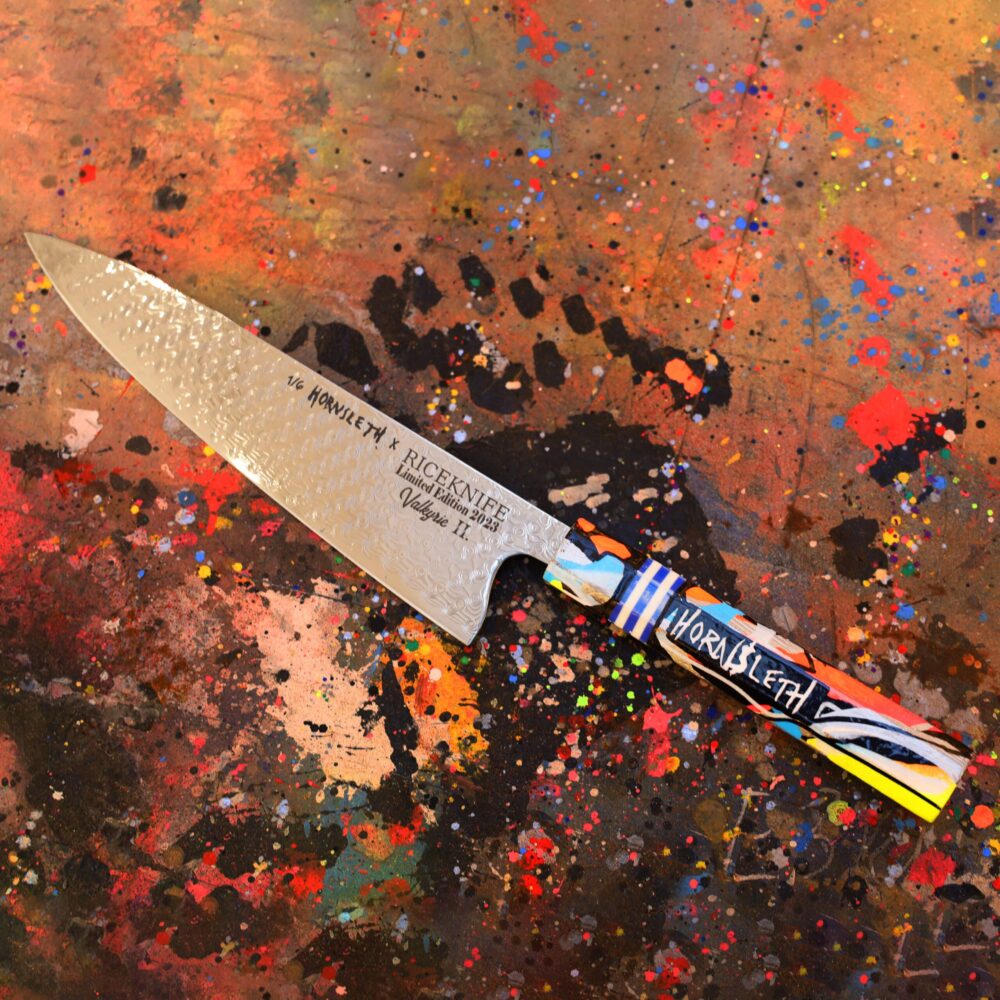 Med en vægt på 155g er denne kokkekniv let og behagelig at arbejde med i længere perioder. Uanset om du er en professionel kok eller en passioneret madlavningsentusiast derhjemme, vil Riceknife Valkyrie II. 2023 – Damaskus Kokkekniv være din pålidelige partner i køkkenet, klar til at give dig præcis skæring og enestående ydeevne hver gang.